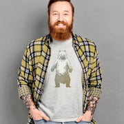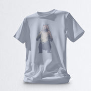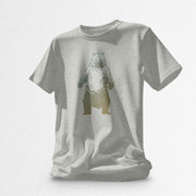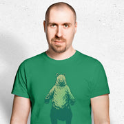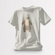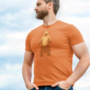This humorous but raunchy t-shirt features Freddy, the gay bear, showing his gay pride — his sack of big testones — giving deeper meaning to “freeballing.”